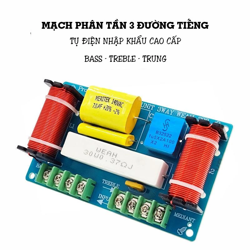 Mạch phân tần loa 3 đường tiếng là một thành phần không thể thiếu trong hệ thống âm thanh chất lượng cao. Sản phẩm này được thiết kế chuyên dụng để phân tách và điều phối âm thanh đến ba dải tần số riêng biệt: bass, treble và trung, giúp loa phát ra âm thanh chính xác và sống động nhất.